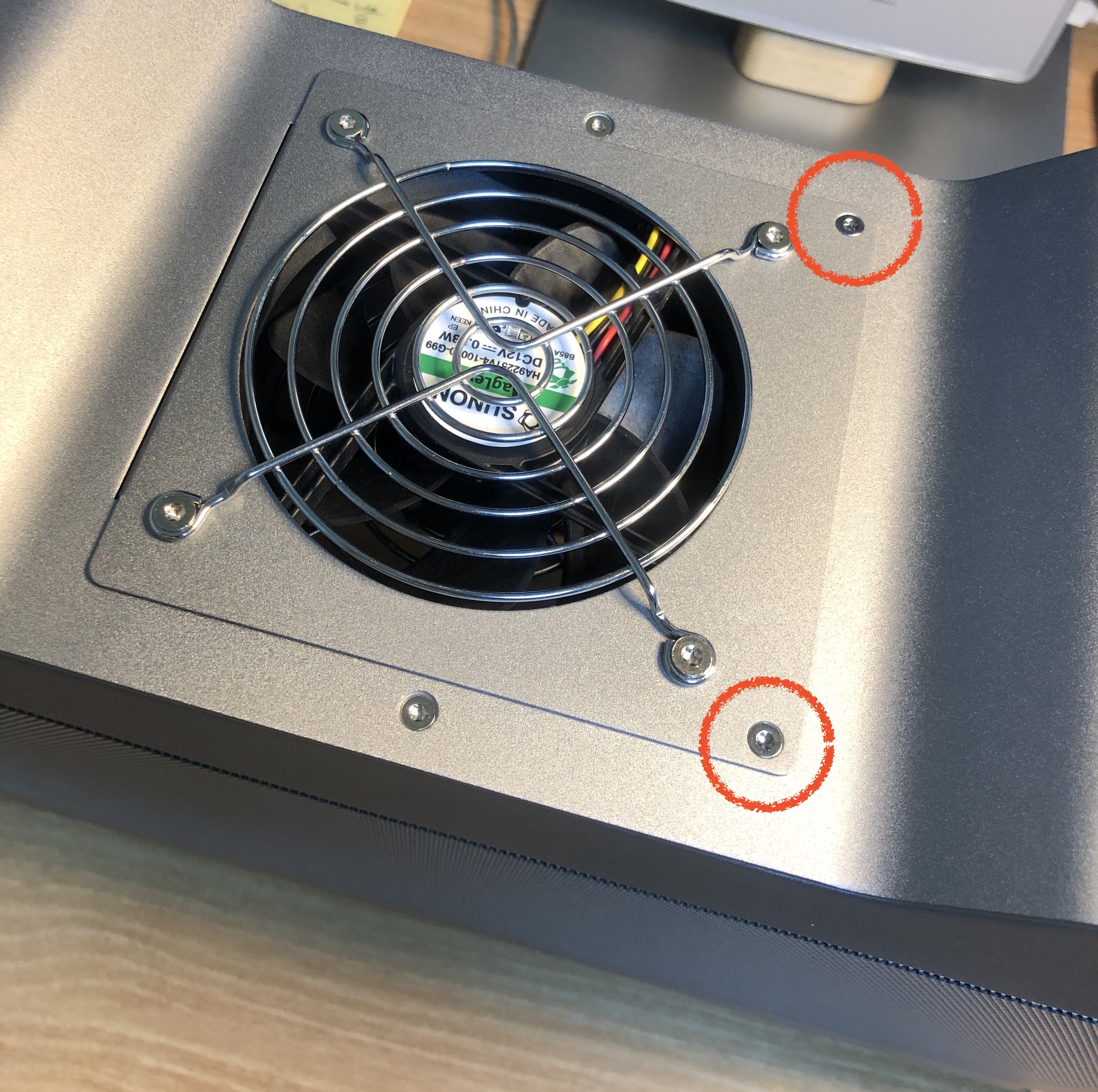그리고 팬의 앞뒤로 고정된 4개, 4개 나사를 모두 풀어 녹투아팬으로 교채해줍니다!