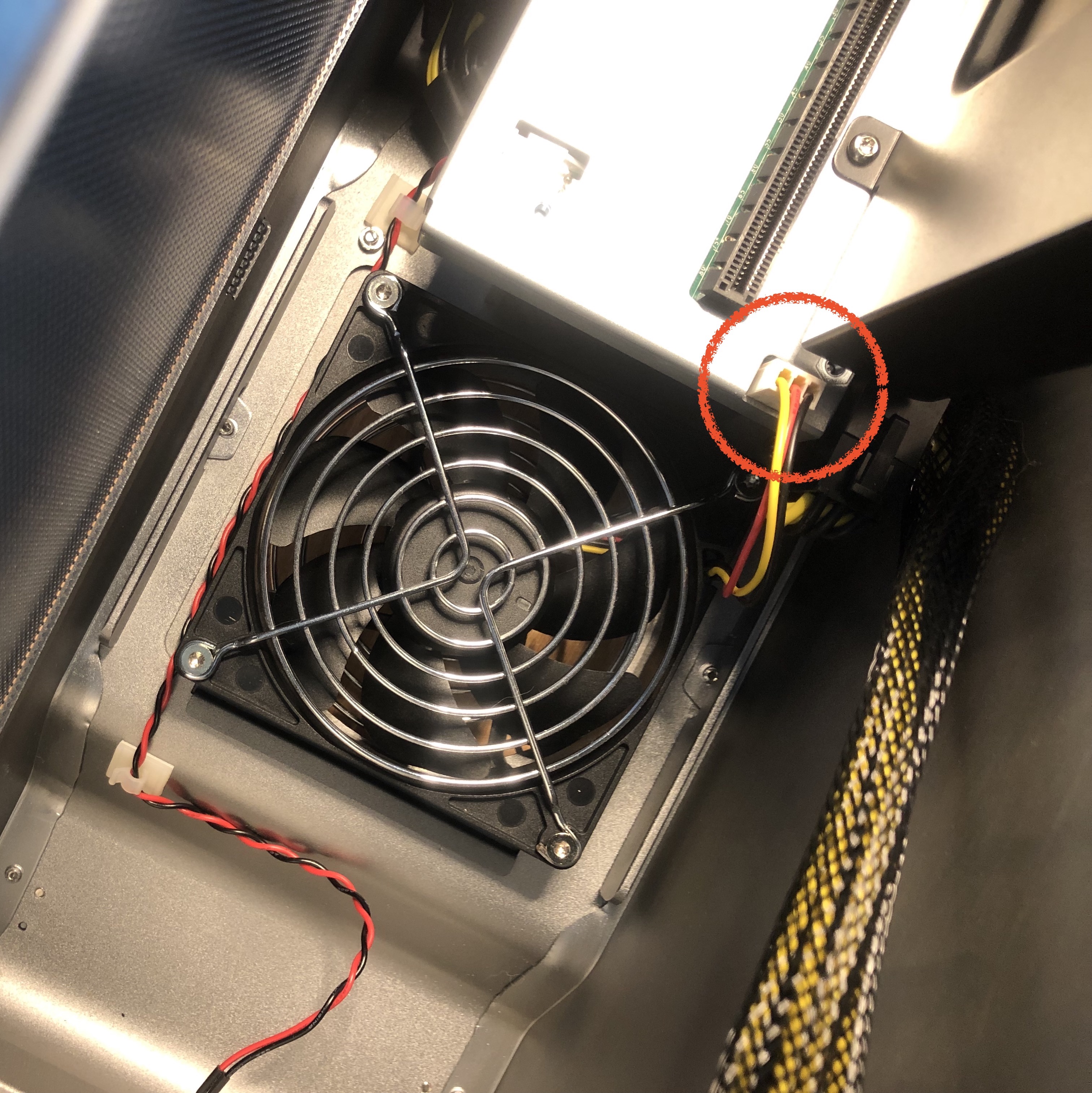 먼저 그래픽카드를 빼고, 교체할 팬의 3핀 케이블을 포트에서 해제합니다.